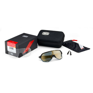 IN THE BOX: hard case, microfiber cleaning bag, alternate fit nose pad and an *extra clear replacement lens