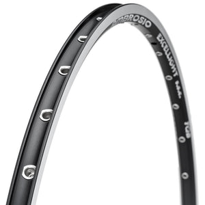 This is a traditional type of rim providing a solid and durable wheelset. A great rim choice for a general purpose training wheelset or appropriate for a retro bike build. The rim construction is black anodized aluminium with a CNC precision machined brake track that yields a smooth, modular braking performance. The spoke eyelets are a double stainless steel design.
