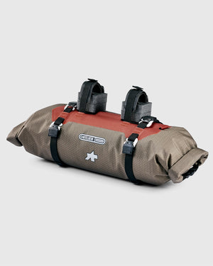 Every day spent bikepacking begins and ends at a campsite, and no site is a campsite till you’ve unrolled your sleeping bag and pad. The ASSOS x ORTLIEB Handlebar-Pack adds 9L of storage to make packing and unpacking your mobile “bed” as easy as possible, with roll closures for quick access and adjustable spacers to ensure stability while mounted on your bar. A deflation valve further increases stability by adapting the bag’s volume to the load size, and the adjustable straps are safe for carbon or alloy bars and head tubes.