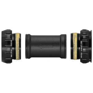 The Campagnolo Pro-Tech Bottom Bracket system features the robust double-protection of Pro-Tech™ – a patented external sealing ring design and a resilient central tube preventing the harmful ingress of water, mud and grit from contacting the bearings.