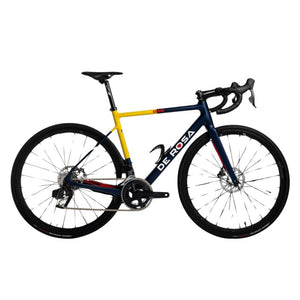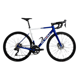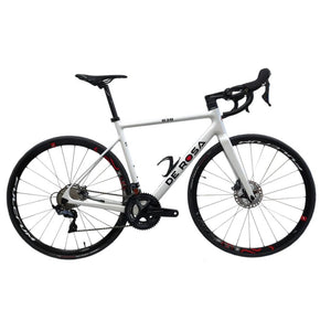 The 838 DISC is De Rosa's latest creation, and it's a bike that doesn't care about frills. Simple, decisive, and effective lines with a clear mission: welcoming you into De Rosa's world without compromising on style and performance. The frame of the new De Rosa 838 is made of carbon, weighing about 900 grams; it is a slightly sloping frame and offers a beautiful balance with the out-of-saddle. The down tube stands out for its sinuosity, and the gearbox is elliptical and polished to ensure greater stiffness. The chainstays are minimal, and the head tube is able to accommodate the fully integrated cable routing for a very clean look and reduced aerodynamic impact. The fork accommodates tires up to 32mm.