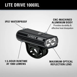 The Lezyne Lite Drive 1000XL Light Front is a powerful, multi-purpose LED front bike light with up to 1000 lumens of output. Features a lightweight yet rugged CNC-machined aluminum body with integrated cooling fins. The light has 8 different output modes, from an attention-grabbing 1000 lumen Daytime Flash setting to an 87 hour runtime Femto Mode, providing options for every riding environment. It’s MOR (Maximum Optical Reflection) lens optimizes and evenly disperses light. A versatile strap securely mounts to a variety of bar shapes and sizes.