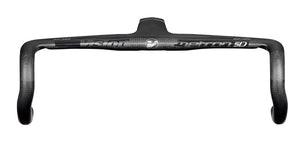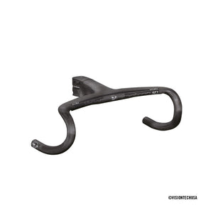 Metron 5D integrated handlebar, the stiffest and most aero integrated handlebar and stem system. Mixing aerodynamics and ergonomics, the unique shape includes our Aero-Ergo central section. With a slight rise from the stem clamp and a 10 degree forward bend, the 5D accommodates the natural position of your arms for more comfort and easier breathing, while the wing-like shape of the bar top aids aerodynamics. Reinforced carbon fiber construction gives a great strength-to-weight ratio. The 5D features internal cable routing, with guides that accommodate wiring for electronic shifting. Now available with the new ACR System, a fully integrated Aerodynamic Cable Routing solution that routes all cables, wires, and hoses internally. Now available in the new 3K carbon finish.