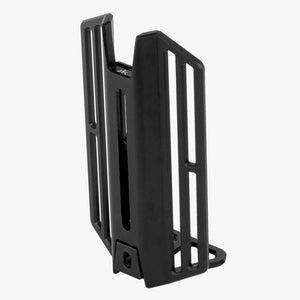 The cargo cage features a two-bolt mounting plate complemented by an optional foot that can be used to extend the cage to fit three-bolt mounts and provide extra carrying capacity in either configuration. A streamlined design ensures clearance for chainrings and crank arms and the universal strap attachment system creates versatility whether using an Apidura Expedition pack, Voile Straps or webbing and buckle systems.