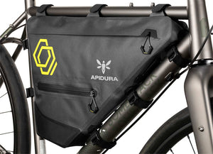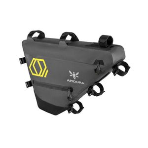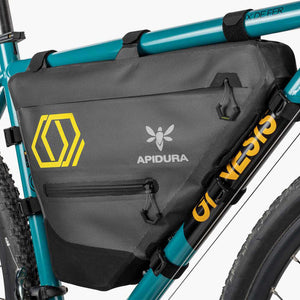 Full Frame Packs fill the bike’s main triangle, providing a large space for bigger items — anything from cooking gear or a water bladder, to tent poles and heavy tools on longer expeditions and bikepacking trips. The resulting low centre of gravity ensures the pack has minimal effect on handling while offering a high volume of storage space.
