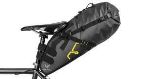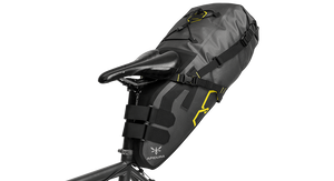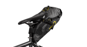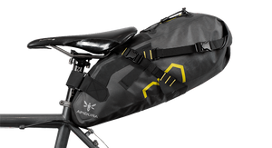 Designed to make full use of the space under the saddle, eliminating the need for a rear rack. Seam welded, to keep water out and provide maximum protection for contents. Constructed from high quality, waterproof materials and optimized for durability and weight. Performs best when used to carry lightweight, compressible gear, such as clothing etc.. Built super strong and waterproof. This pack has been designed to keep water out, even in a sustained rain.