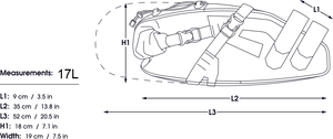 17L version: Length min 35 cm > max 52 cm | Height 18 cm | Width 19 cm | Weight 425g