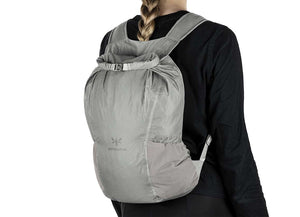 The Apidura Packable Backpack is waterproof, constructed from ultralight materials and features cycling-specific contoured shoulder straps for riding comfort. Unisex and one-size-fits-all, with adjustable sternum straps. A roll-top closure allows the bag to accommodate loads of varying sizes and the rear of the pack features reflective details for enhanced visibility at night.