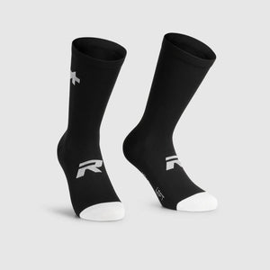 ASSOS R Socks S9 are ultra-breathable, super-tall racing/riding socks engineered with targeted support for high-intensity riding in warm/hot conditions and daily utility. Ultralight bodies breathe, wick, and promote cooling airflow suitable for hot conditions, and the lightly compressive hold maintains a secure, slump-free fit. Race tuned and designed with left and right specific fit. Pack contains two pairs of socks.