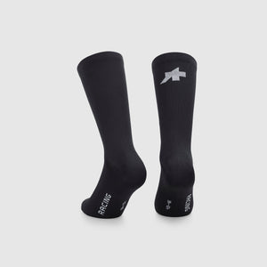 Competition cycling socks engineered for daily riding/racing and high-intensity training, with advanced cooling construction and colorways to match ASSOS jerseys. Lightweight, comfortable high performance support, now available in colorways that match jerseys from the R and RS collections. The Oxigen Tec yarns boost cooling airflow and breathability in hot conditions, and the taller sock height signals competitive intent along with comfort and style.