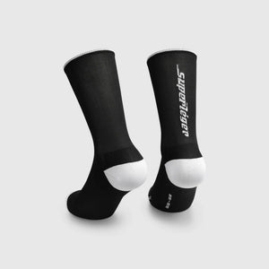 Superlative comfort, compression, and lightweight breathability, the ultra-cooling RS SUPERLÉGER is ASSOS most versatile summer racing sock. Updated design elements include a clean aesthetic, which matches any speed/racing kit. Re-engineered S11 version with an extended sock height for a speed/race-tuned silhouette.