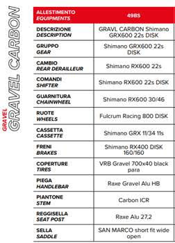 road bGRAVEL CARBON with light monocoque UD disc carbon frame, disc brakes, 12mm thru axle is the bike designed for the most demanding gravel routes. The powerful disc brakes, the oversized 700x40 gravel tires and the comfortable geometries offer further traction and stability making it reliable in every situation. Available in in Shimano GRX600 2x11 specific for gravel biking.