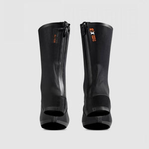 Constructed using ASSOS 2L waterproof Water-Shield textile, a superlight, foot-molding membrane that’s as protective as it is aerodynamic. The waterproof 2L (2 layer) textile is reversed with the slippery membrane on the inside. The aero cut ensures light compressive support throughout the ankle and lower leg, while zeroCuff and reversed waterproof camlock zipper round out the streamlined design.