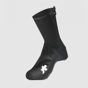 Aerodynamic rain booties for year-round riding, constructed with ASSOS ultrathin 2-layer waterproof-breathable Water-Shield textile to protect your feet in the wettest conditions. An aerodynamic, wind-cheating shoe cover that also happens to be waterproof and highly visible. A versatile accessory, suitable for 3X seasons. Protect your shoes and feet; during the rainiest mid-season days, on dirty and wet Spring/Fall roads or in case of emergency during summer storms.