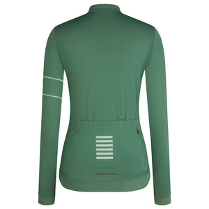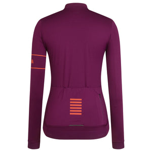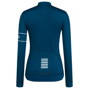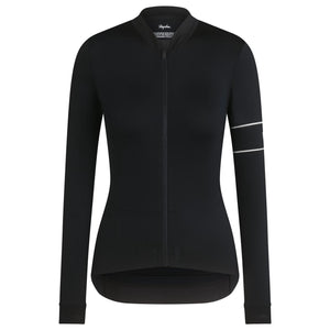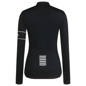 The Pro Team Long Sleeve Jersey is a versatile mid-layer created to provide warmth without weight on rides in cool conditions. The jersey is made with a 185gsm main fabric whose micro grid construction creates tiny air pockets and wicks sweat away from the skin to regulate body temperature and insulate against the cold. The fabric’s four-way stretch creates a streamlined silhouette while low-profile, elasticated grippers on the cuffs and hem improve stability. With a seamless construction for reduced bulk, the three rear pockets are lined with a breathable mesh, and there’s also a zipped essentials pocket for valuables. For improved visibility in low light, a reflective tab and Pro Team bars are positioned centrally on the back.Collections: Apparel Clearance Items Jerseys Rapha Collection Rapha Pro Team Collection Womens Apparel Womens Jerseys