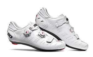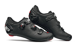 Features of the SIDI Ergo 5 are; composite carbon sole (a carbon fiber nylon blend), the new SOFT INSTEP 4 CLOSURE SYSTEM, SIDI TECHNO-3 PUSH wire closure dials in fit along the entire length of the shoe, adapting the upper to the shape of the foot. Front closure is a HIGH SECURITY VELCRO strap with integrated locking polymer teeth making a much more secure closure. SIDI HEEL CUP is a reinforced anatomic cup that stabilizes and supports and protects the heel area. As usual for SIDI shoes, replaceable parts are part of the design.