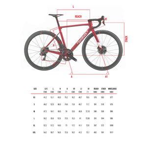 Six sizes, one feeling. The sections of the tubes of various sizes were designed to maintain consistent rigidity, handling quality, and comfort on every frame size. Specifically, during the design phase, we created a different section for the main tubes for each size of the bicycle in order to increase the frame's torsional stiffness and stability.