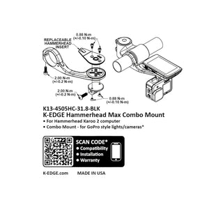 The strongest K-Edge mount on the market featuring the Hammerhead Mounting System for your Karoo 2 computer. Designed as a rock-solid platform for your Hammerhead computer in the on-center, out-front, and aero position with a mount for your camera or light underneath. Chosen by the best year after year, when quality performance, and craftsmanship matter.