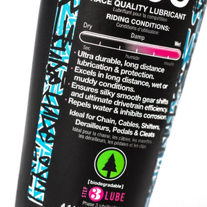 Muc-Off Wet Chain Lube is an ultra durable, long distance chain lubricant and oil that’s been specifically formulated to excel over long distances in wet or muddy conditions. Our state of the art formula has been derived from natural ingredients and made completely from renewable sources.