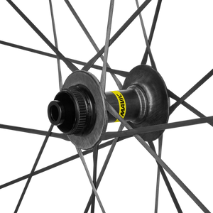 The spokes are made with unidirectional carbon fibers, so they don’t stretch. The spokes run continuously from one edge of the rim to the other, through the hubs (R2R technology), creating one single spoke instead of two. This adds wheel stiffness and eliminates the need to mechanically attach the spokes to the hub.