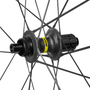 Inside the carbon hub shells, the axles are paired with automatically adjusted sealed cartridge bearings for perfect preload. At the back, the ID360 freewheel system provides instant engagement (40 points of engagement = 9°) and low friction. The hubs are thru-axle compatible (12x100 up front and 12x142 at the back) and made for Center Lock brake rotors.