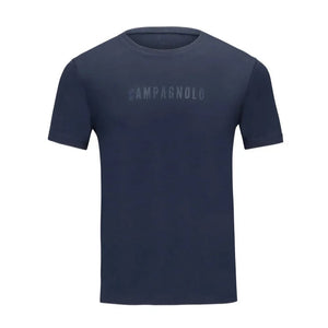 Campagnolo Logo T-Shirt in 100% cotton. The Campagnolo block letter logo screen printed on the front and a small Campagnolo winged logo screen printed on the back behind the neck in contrasting blue tone. T-shirt round-neck style design. Available color: Navy Blue. Unisex item.