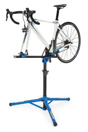 Updated with a smoother, more solid rotation system! Originally designed for professional Pro Tour mechanics. The Park Tool PRS-22.2 repair stand firmly holds any bike without clamping the frame or seat post by supporting the bottom bracket then locking either the front or rear dropouts. Works with any style axle system, including quick release and all sizes of thru-axles without cumbersome adapters. Ideal for cleaning and general repair work, the PRS-22.2 features a solid tripod base and folds compactly for storage or transport.