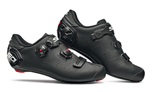 Features of the SIDI Ergo 5 are; composite carbon sole (a carbon fiber nylon blend), the new SOFT INSTEP 4 CLOSURE SYSTEM, SIDI TECHNO-3 PUSH wire closure dials in fit along the entire length of the shoe, adapting the upper to the shape of the foot. Front closure is a HIGH SECURITY VELCRO strap with integrated locking polymer teeth making a much more secure closure. SIDI HEEL CUP is a reinforced anatomic cup that stabilizes and supports and protects the heel area. As usual for SIDI shoes, replaceable parts are part of the design.