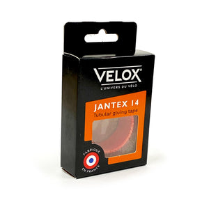 The VELOX Jantex 14 tubular tire rim tape is double-sided and requires no waiting time. This tape is specifically designed for carbon rims with three specific layers for exceptional adhesion. (the tape may also be used to adhere tires to aluminum rims)