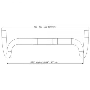 handlebar sizes 40cm, 42cm, 44cm, 46cm (outside to outside measurement>see diagram)