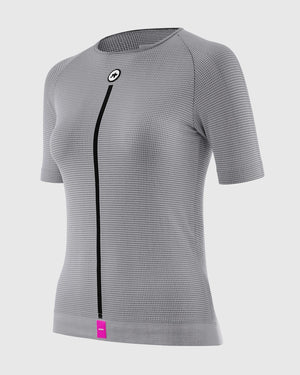 The next evolution of ASSOS hypercooling, ultrabreathable Summer Skin Layer, re-engineered to be more elastic, more breathable, and 15% lighter. For ASSOS Summer 1/3 layering system, this lightweight, ultra-cooling skin layer disappears beneath your jersey. *rev2025 version has a slightly revised neckline.