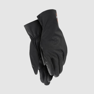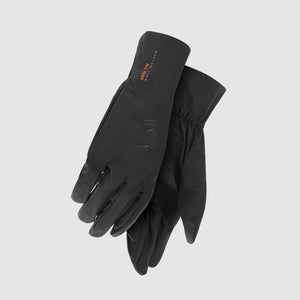 ASSOS RSR Thermo Rain Shell Gloves are water-repellent gloves with extended cuffs, constructed of a 2-layer waterproof membrane material engineered for the harshest weather and most demanding race conditions. #sufferincomfort #equipmentnotclothing #theygoinsidewestayoutside