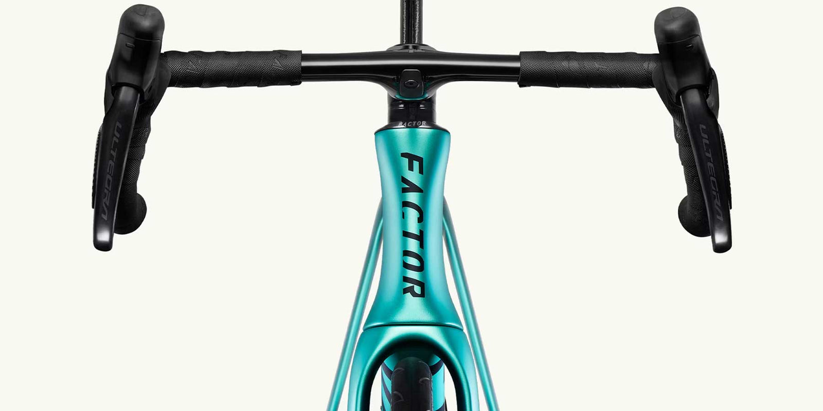 The one-piece, aerodynamic Black Inc Barstem reduces drag by meeting clean incoming airflow with a clean shape. Fully internal cabling brings further gains and Factor has achieved this while maintaining a 1⅛” top headset bearing for optimised frontal area, whereas many other brands increase the head tube size to accommodate internal cabling, cancelling out the benefits. And the introduction of CeramicSpeed SLT Bearings removes any worry of headset maintenance.