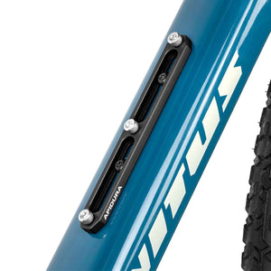 The bottle cage relocator simply bolts onto bottle cage mounts, creating 55mm of vertical movement to make it easier to fit bottles alongside a frame pack. Using the supplied bolts, the bottle cage is then attached directly to the bottle cage adjuster. With three mounting points available, it is possible to convert standard two-bolt mounts into three-bolt mounts, capable of carrying cargo cages and increasing carrying capacity.