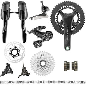 Disc brake version: Crankset/ Ergopower levers/ hydraulic brake calipers+160mm/140mm F/R disc rotors/ rear derailleur/ front derailleur/ cassette/ chain/ UT BB cups