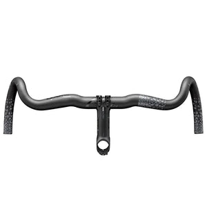 The handlebars feature a 10° backsweep angle and 5° downsweep for a more comfortable set-up for long distance bikepacking. A 10mm rise is an additional help to get the desired handlebar stack height. The 24° flare and 3° outsweep at the drops offers a superior stability when you are riding a challenging terrain.