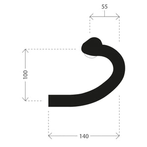 Reach and drop have been optimized in the EOS shape (Endurance Optimized Shape). The 55mm reach allows a closer position of brake levers while the 100mm compact drop is for more comfort and fast transition from lever to bar-end. There is a 90mm wide center area to install any accessory such as a computer mount, light or clip-on bar extensions. DEDA Gera Alloy handlebars are available in 4 different sizes: 42, 44, 46 and 48cm (measured outside-to-outside at the lever position).