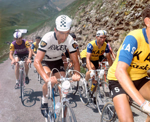Classic, clean, and unmistakably retro — the La Bicicletta Toronto Vintage Collection Jersey Signature 4 channels the timeless style of the iconic Peugeot-BP-Michelin cycling kit that defined a golden era of European racing. With its bold black-and-white checkerboard band wrapping the chest and back, this jersey pays homage to the legendary teams and riders who made the checkerboard design a symbol of the peloton. Peugeot-BP-Michelin team riders Tom Simpson, Eddy Merckx, Roger Pingeon, Bernard Thevenet.