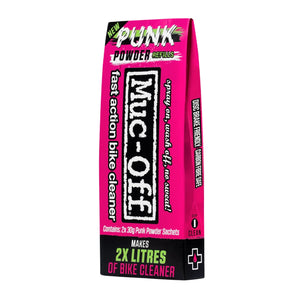 Introducing the Muc-Off Punk Powder Bike Cleaner - 4 Pack. Our revolutionary powder-based cleaner not only eliminates tough dirt and grime but also reduces plastic and water usage, and CO2 output. Formulated with biodegradable, plant-based ingredients, it's safe for you, the environment, and all bikes and finishes. Say goodbye to carbon footprints and hello to a sparkling clean ride.