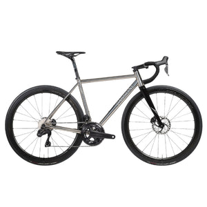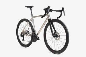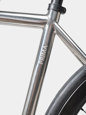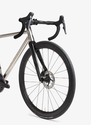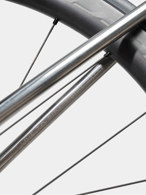 The Prima’s 56mm conical headtube is created from three Grade 5 titanium pieces and welded together, offering the greatest level of handling performance, alongside high accuracy in terms of bearing cup tolerances. Housing 1”½ lower and 1”⅛ upper stainless steel bearing cups, the tapered headtube is a centrepiece in the elegant ride character of the bike.