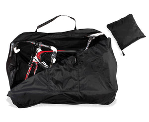 A super compact fold-up bike bag. A foldable bike bag, ideal for protecting your car's interior or just storing your bike. This item only holds a bike without wheels. The bag itself folds away into its own pocket and is 100% washable. This bag is not suggested for air travel- suitable for car, bus or train transportation.